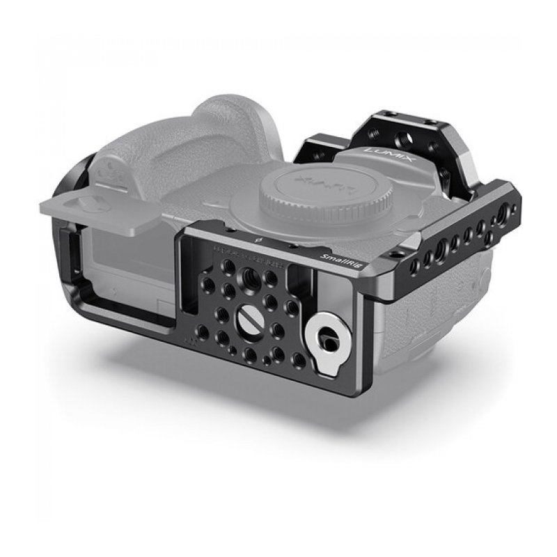 Прочная клетка для камер Panasonic GH5 и GH5S, выточенная из цельного бруска алюминия. Множество резьбовых гнезд 1/4"-20, 3/8"-16 и Arri 3/8”, холодный башмак (сверху) и планка НАТО (слева) позволяют установить всё разнообразие дополнительных аксессуаров, в том числе: верхние и боковые ручки, мониторы, рекордеры, микрофоны, лампы постоянного света, фиксаторы для кабелей и 15-мм направляющие. Справа и слева в верхней части предусмотрены крепления для ремня. Клетка обеспечивает камере защиту от случайных ударов, одновременно предоставляя свободный доступ к батарее, карте памяти, всем интерфейсам и органам управления. Вес клетки составляет всего 190 г.